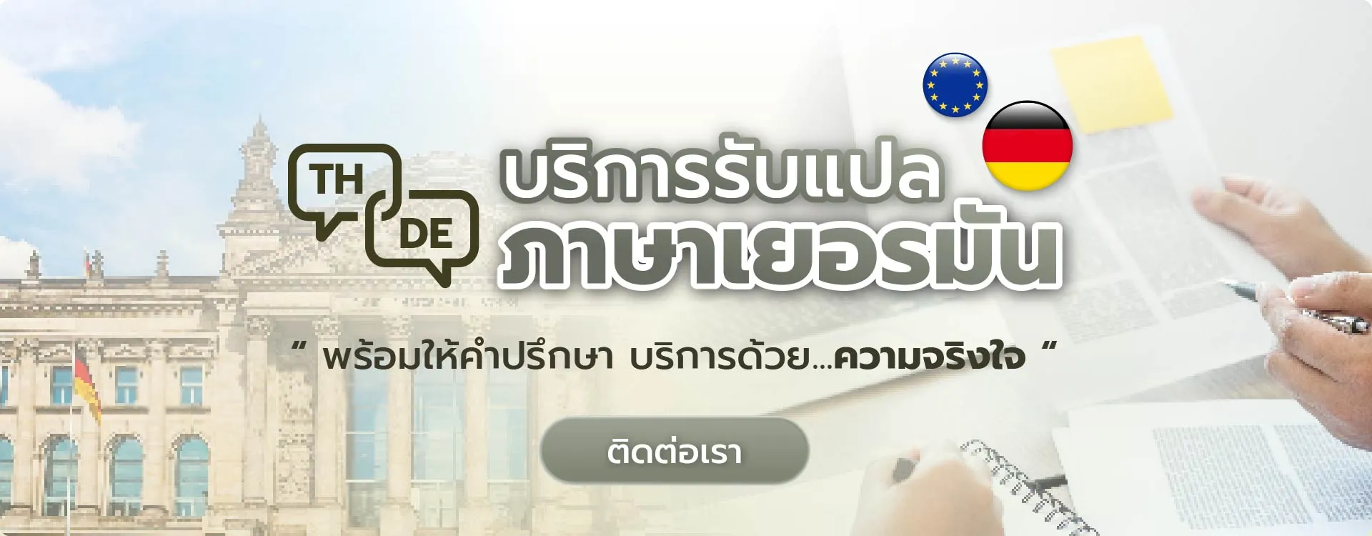 แปลเอกสารราชการ ธุรกิจ กฎหมาย และเอกสารส่วนบุคคลทุกประเภท โดยทีมงาน ผู้เชี่ยวชาญด้านภาษาเยอรมัน ดูแลความถูกต้องตามต้นฉบับและรักษาความลับของลูกค้าอย่างเคร่งครัด